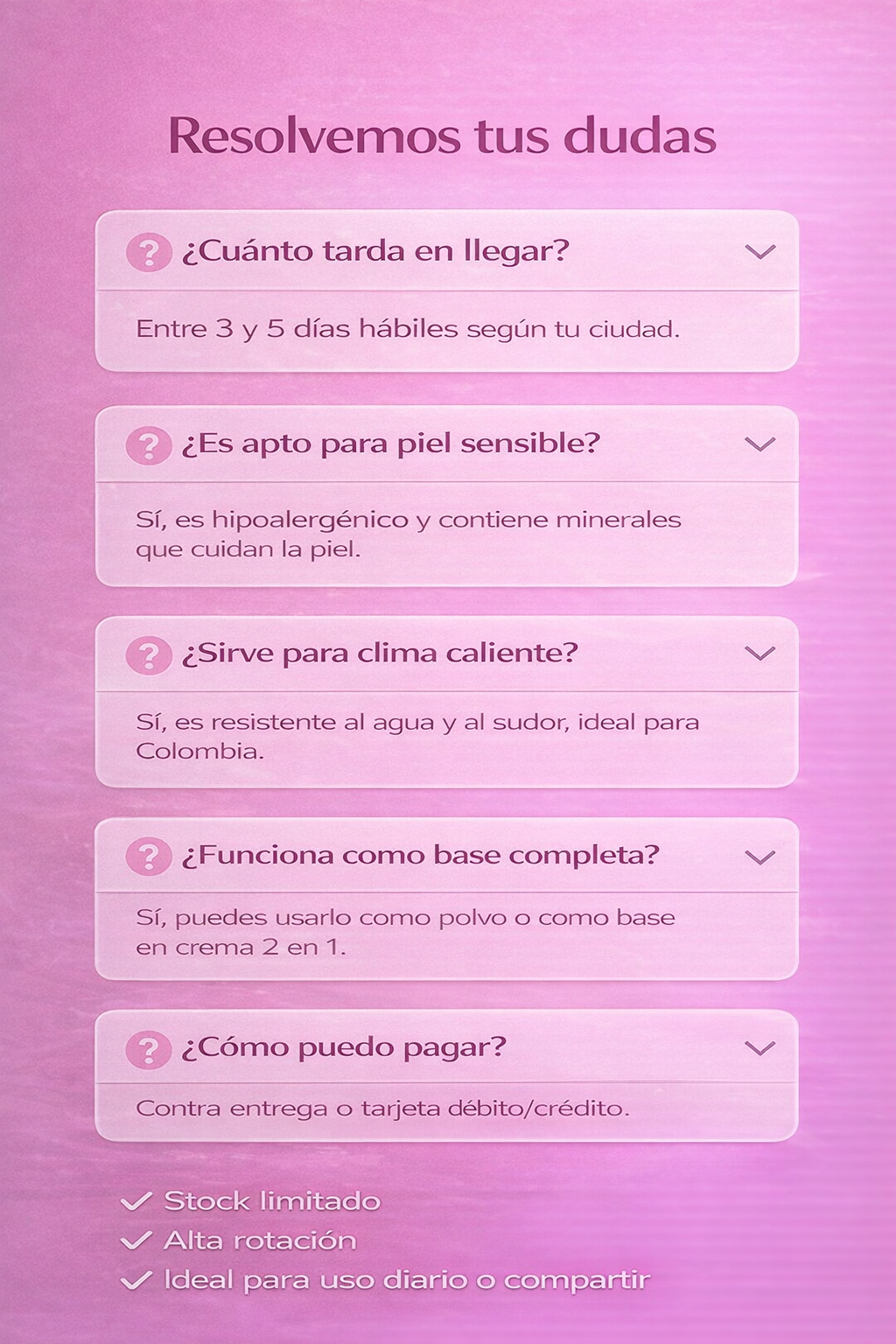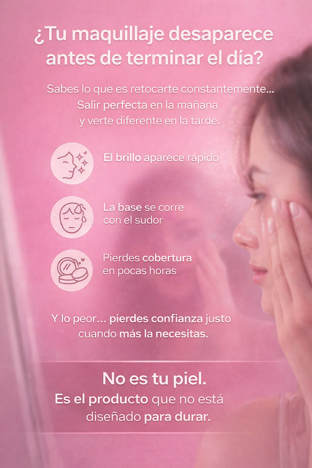 “Me lo puse en la mañana y aguantó TODO el día 😍 Cubre súper bien y no deja la piel pesada.”
